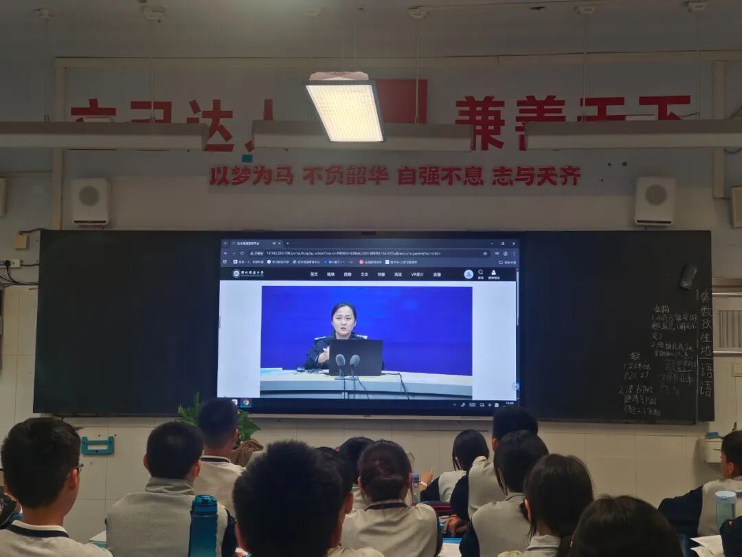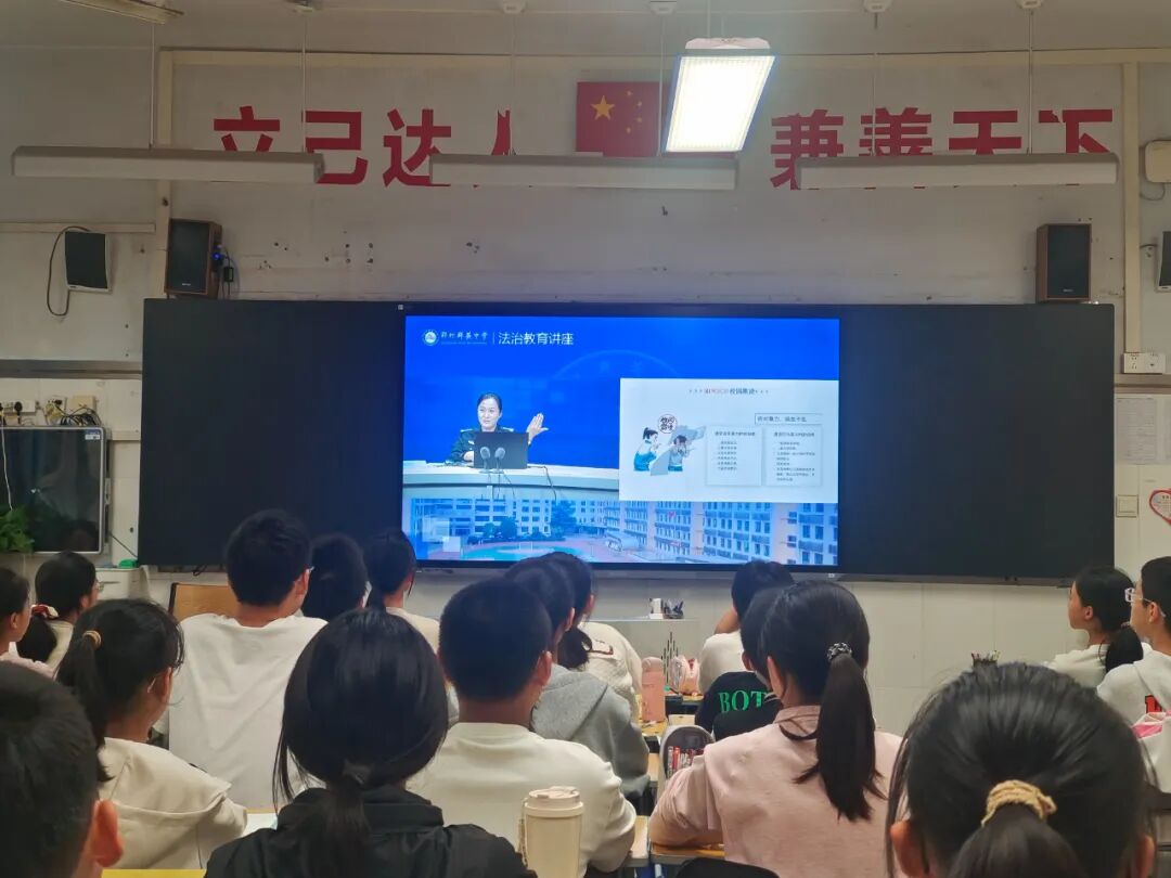 为进一步增强学生的法治观念和安全意识,营造安全、文明、和谐的育人环境,9月23日下午,郑州群英中学特邀法治副校长、郑州市公安局金水分局南阳新村派出所民警宋园园,开展“筑牢青春防线,法治护航成长”为主题的法治教育主题讲座,为同学们送上一堂生动的“法治必修课”。